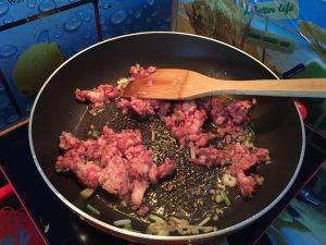 加入肉馅儿翻炒(肉馅儿最好选择五花肉的 比较香);