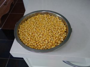 去皮豌豆浸泡半天(12个小时),我中途换了几次水。