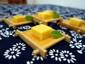切成小块,豌豆黄就可以吃啦。甜润细腻柔滑,入口即化,略带淡淡的清凉,就是这个味儿。