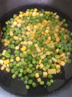 先用水煮豌豆 然后加入玉米