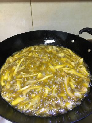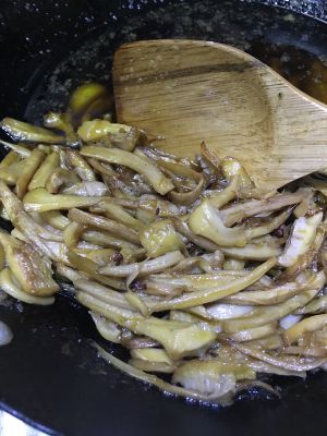 分次加松茸,全部加入后注意火候,不要一直大火。大小火切换。
