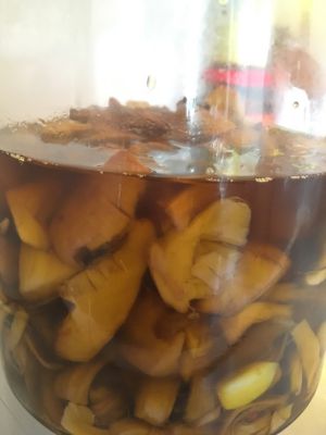 熬制约20分钟以后,加蒜,干辣椒,花椒,换中小火。