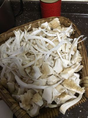 松茸洗净撕碎晾干(用开伞松茸更有嚼劲)