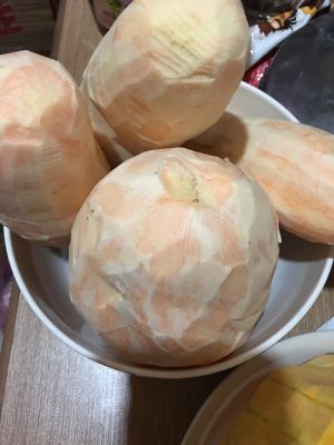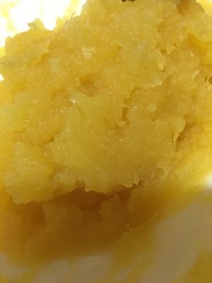 蒸好的红薯碾碎 趁热加适量白砂糖搅拌均匀。