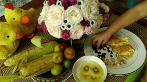 早餐配了奇异果酸奶,玉米,蔓越莓,开心果和李子