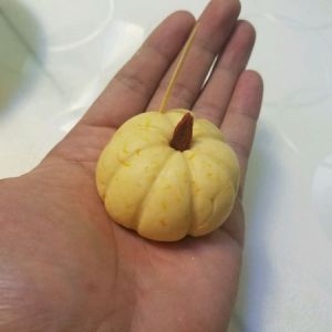 然后用牙签压出一道道纹路,中间放入枸杞,成南瓜状。
