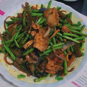洋葱切条,豇豆切段,肉准备好,就可以烧油