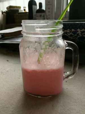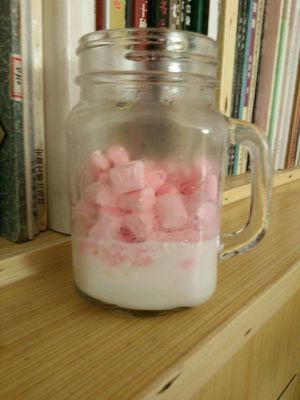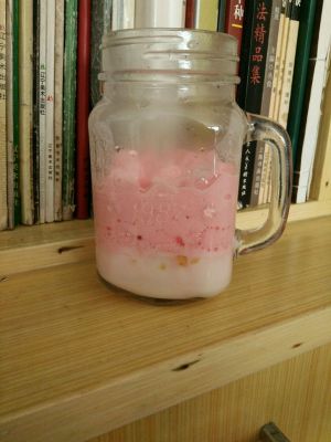 充分搅拌,直至无棉花糖,倒入喜欢的水果粒