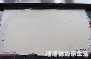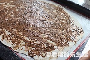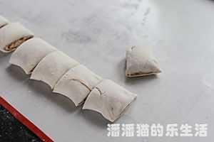 将涂有芝麻酱的面片从一头卷起,切成均等的小面剂子。