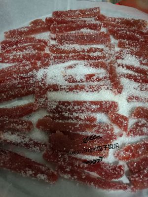 一般凉至两三天左右即可,切成自己喜欢的细条,沾上砂糖即可装盘享用。