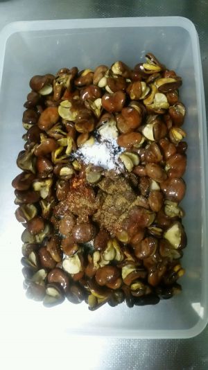 稍冷放入自己喜欢的调料:盐,花椒粉,辣椒粉,五香粉必须