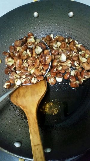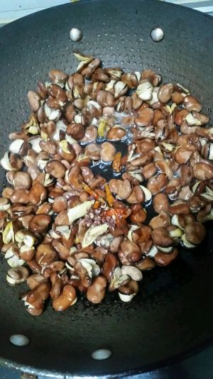 锅红下油,冷油放蚕豆入锅,慢慢炒,先大火后小火,注意烫伤,因开口的蚕豆会炸开,喜欢麻辣的中间可以放干辣椒,花椒颗粒,炒至蚕豆变金黄色,声音会哗哗响时关火
