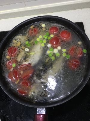 放蒜,葱,圣女果!继续煮。