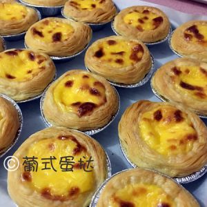 每个烤箱脾气不一样,我新买的烤箱没有掌握好时间和火候,应该是180度20分钟、200度再烤5分钟的样子!我看蛋挞皮已经起酥,还有饼干要烤就没有在等了!在等一下应该就起焦斑了,看着更有食欲哟!