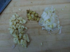 葱姜蒜切末备用