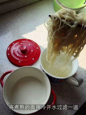 将煮熟的面用冷开水过滤一道