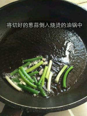 将切好的葱蒜倒入烧烫的油锅中