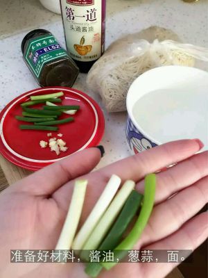 准备好材料"酱油,葱蒜,面"