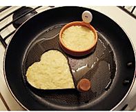 平底锅加热,加少量油,放入模具。模具里放入适量的面糊,中火煎至一面金黄,面糊基本成型,再翻面继续煎,煎至两面都呈金黄色即可。