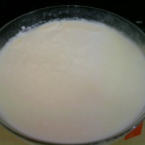 这时候牛奶应该结成了一层奶皮 用筷子将奶皮戳破 使牛奶溢到奶皮的上面