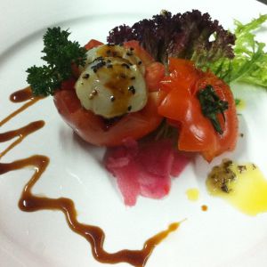香煎澳洲带子伴烤蕃茄沙拉菜谱做法