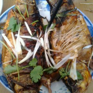 锅内放油、小火烧热、放入冰糖炒至冰糖溶化、变红褐色加清水(放入鱼后能没过鱼的三分之二就差不多了)