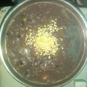 煮差不多熟时放瘦肉皮蛋,喜欢青菜可以放点,出锅前放调味料盛出至可,我前几天做的酸辣粉剩芝麻加了点点缀。