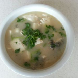 锅内热油放入适量食盐,把鱼放在锅中把两年煎到微黄放入葱姜,在锅边烹入料酒后注入开水等十分钟左右汤热变白后加入豆腐在炖煮十分钟。期间加入盐调味,待出锅前叫入鸡精和胡椒粉就可以