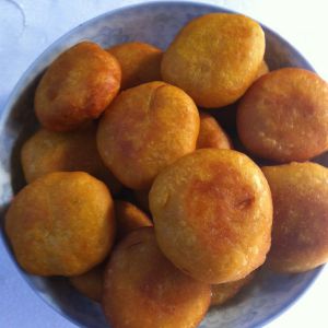 然后搓成圆形用捏扁,锅里下油放小火煎至金黄就差不多了。