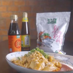 将搅拌均匀的汁淋在鸡块上,再淋上花生碎