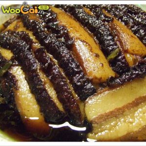 切好五花肉,再用酱油拌匀,入碗摆成一排,上面放冬菜,姜葱,花椒粒上笼蒸约2小时至粑熟起锅翻入盘中即成。