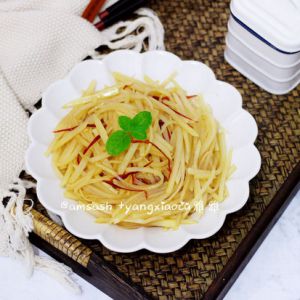 锅中注入适量的食用油,烧热倒入土豆丝,大火把土豆丝炒软软