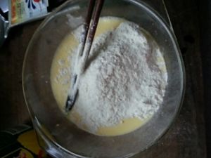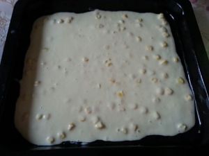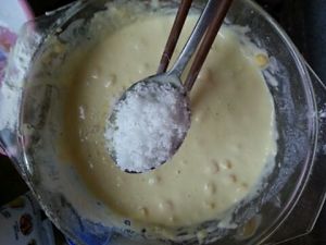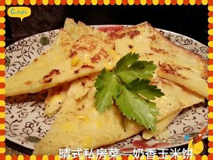 烤盘刷油,倒入打好的玉米胡 也可用平底锅煎