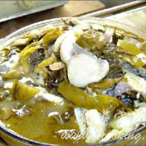 鱼骨切5厘米长的段; 鱼头从中间劈开,一份为二,待用; 在油锅内下入泡椒、大蒜,爆香; 后入四川酸菜,小火慢炒1分钟,倒入高汤或清水,大火烧开; 然后,放入鱼头和鱼骨,盖上锅开,大火烧5分钟; 加入少量、味精和胡椒粉; 最后慢慢下入鱼片,看到鱼片全部发白后半分钟就可以出锅了