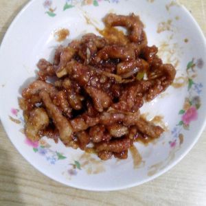 把肉切程小条,用盐,味精,花椒面,牛肉粉,淀粉薄薄的一层,腌入味。十分钟左右。
