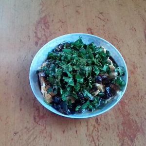 .把皮蛋切成丁铺在豆腐上面。再切点香菜末撒在上面,最好是叶子部分。