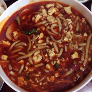 烧油,把花椒,大蒜,姜倒入翻炒,闻到香味了,加入葱和火锅底料!