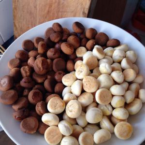 搓成比黄豆粒大一点点的面团。中间留1公分左右的空隙。表面刷少许蛋液。