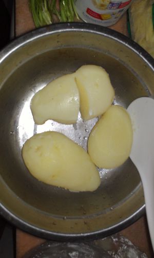 将马铃薯蒸熟压烂,拌上盐,淡奶油,黄油;