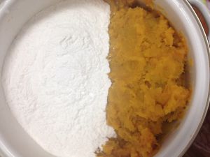 地瓜碾碎和糯米粉充分搅拌