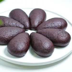 煎好的三黑馒头貌似水滴,又像羊角,表面光滑而且泛着亮光,并且散发着淡淡的黑米的清甜香味,表面暄软,用手一按可弹起来,底部焦脆,晃动锅子有和锅底摩擦发生的哗哗声,8个馒头在平底锅中跳着舞而队形不乱。