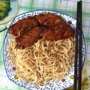 帮面条煮好,捞起来,再把鸡翅的汁用来捞面,完成,简单的!