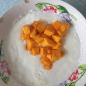 最后在上面放上你爱吃的水果,排个好看的造型,就OK了!(下次用蒸鸡蛋羹的方法试试,哪个更好吃)下次揭晓