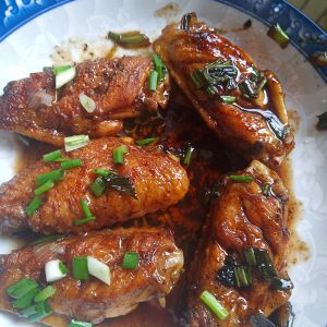 把鸡翅洗净,划两到口子(比较容易入味),把葱切成葱花