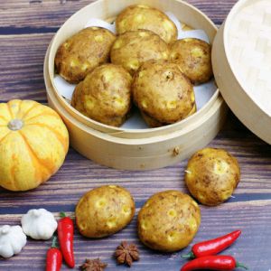 南瓜去皮切块,蒸锅上蒸透,用勺子捣成南瓜泥