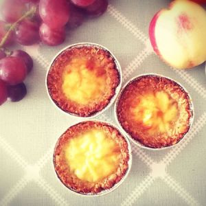 挞皮180度烤10分钟(因为我家的麦片是生的,所以多烤会儿,如果是熟麦片,烤几分钟定下型即可)
