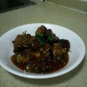 锅中留一点点油放葱姜末煸一下,倒入调好的糖醋汁烧开,在倒入已熟的排骨翻炒均匀,出锅撒上熟芝麻即成,