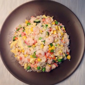 所有配料切成小颗粒,放入烧开的水过一下,等待备用!