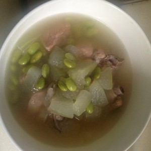排骨汆水,捞掉浮末,小火加盐炖一小时。