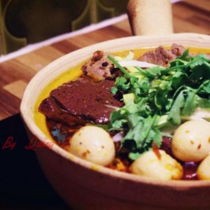 葱,蒜,香菜切小块待用。这时候锅中下油(多一些),烧至6成热。放入一半的葱蒜炒香。再加入豆瓣酱,炒出香味。加500ml水。大火煮开,加入盐。转小火煮10分钟(忘了拍照)